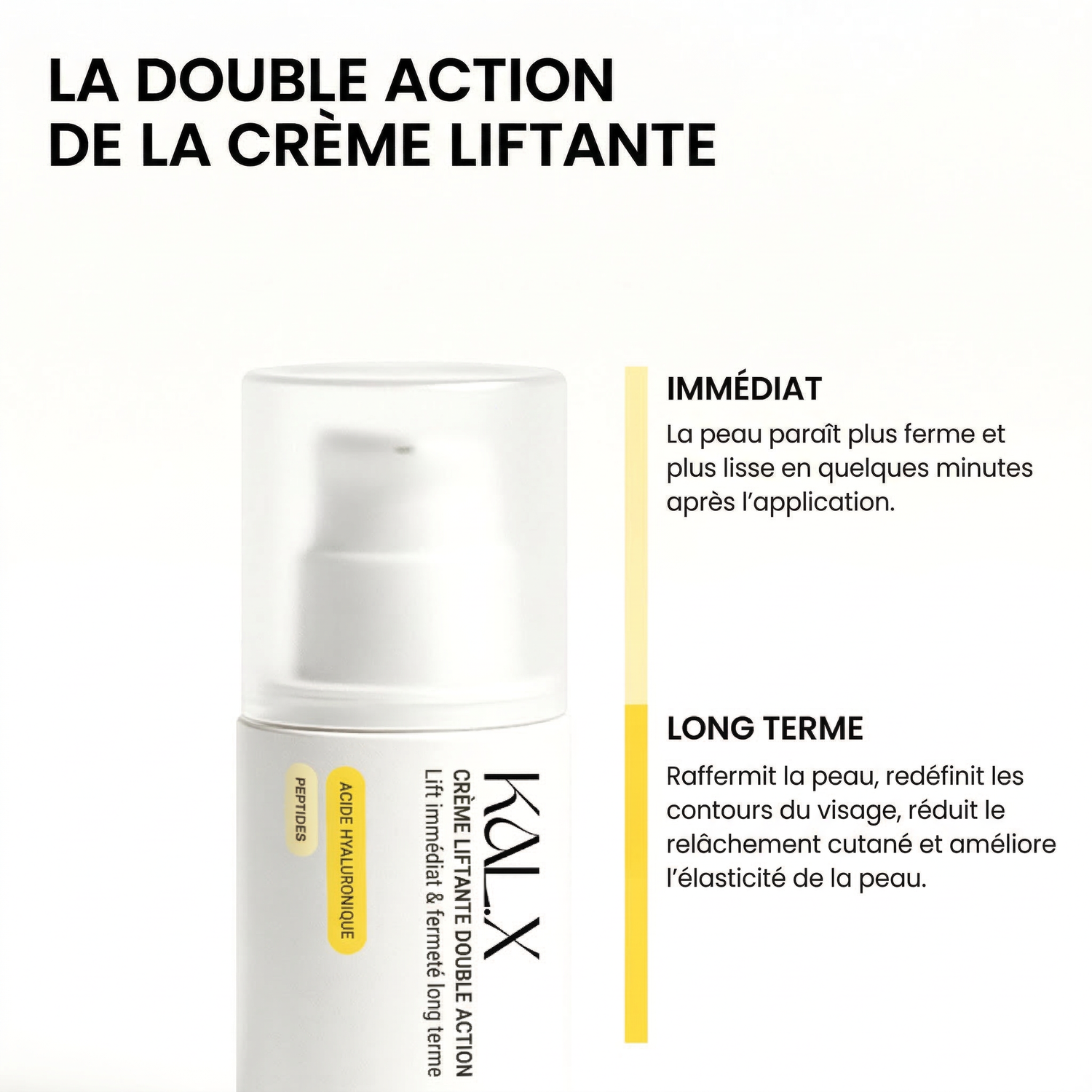 Résultat : un visage visiblement plus ferme, plus lisse et plus jeune dès les premières applications.